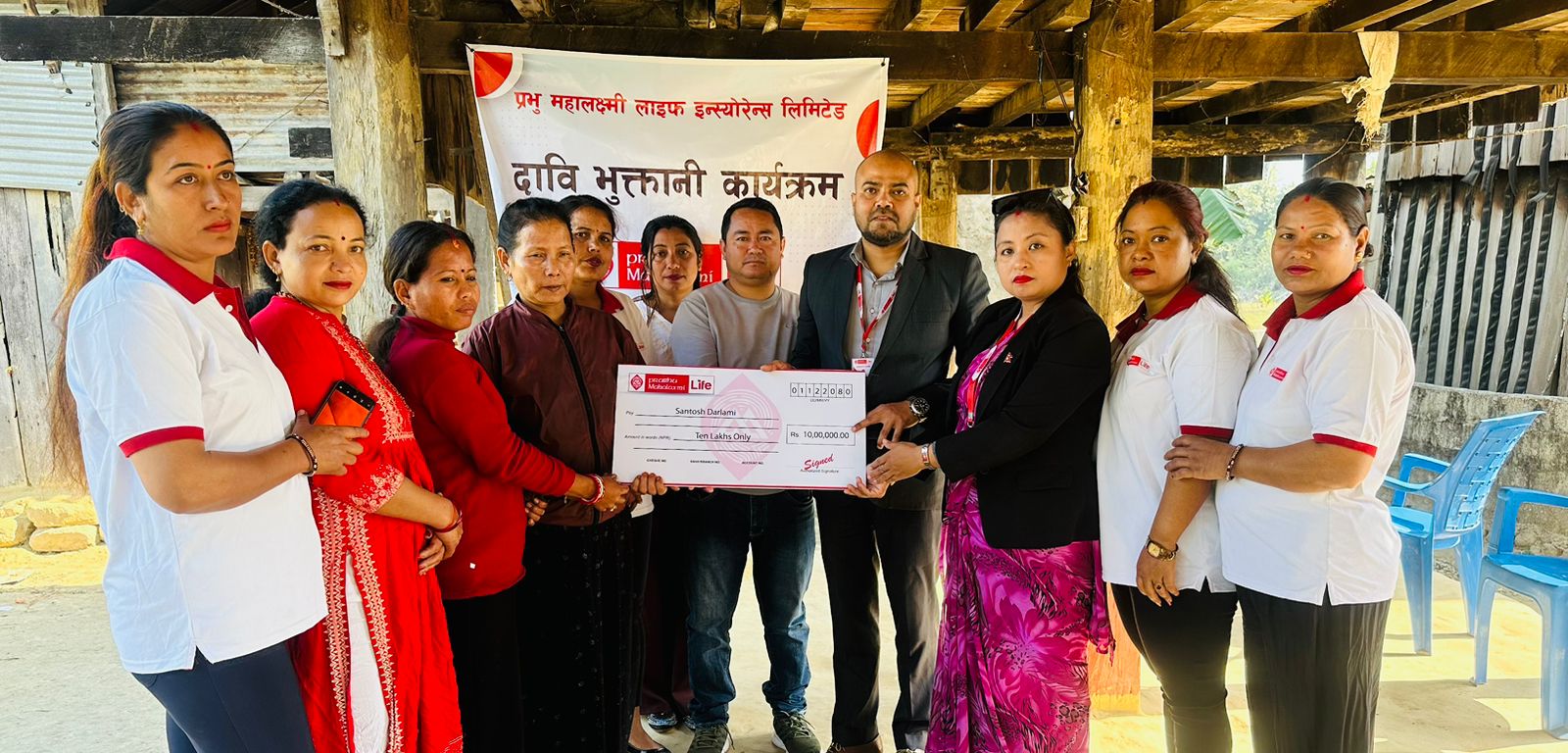 चैत्र ४, निजगढ। बारास्थित प्रभु महालक्ष्मी लाइफ इन्स्योरेन्स, निजगढ शाखाले घातक रोग लागेका एकजना बीमितलाई १० लाख रुपैयाँ प्रदान गरेको छ।उक्त ईन्स्योरेन्समा घातक रोग लाग्दा सुविधा पाईने शिर्षकमा बीमा गराएका निजगढ नगरपालिका-२ सिंगौलका सन्तोष दर्लामीले बीमांक रकमको दाबी भुक्तानी रकम १० लाख रुपैयाँ प्राप्त गरेका हुन्। कंपनीले दर्लामीको घरमै पुगि उनको आमा र दिदीलाई उक्त रकम बराबरको चेक हस्तान्तरण गरेको हो।